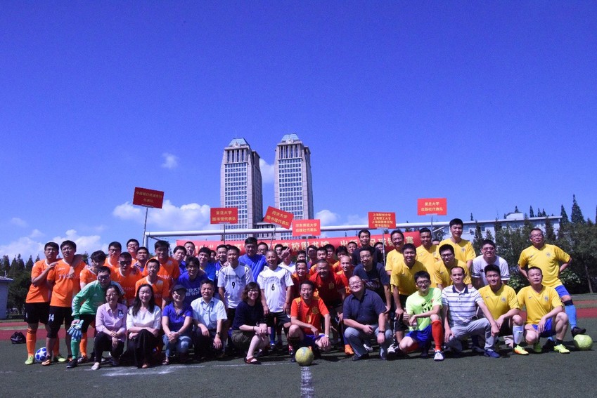 图1:各队领队开球仪式 2018年国庆金秋即将到来之际,也是复旦大学图书馆即将迎来百年馆庆盛典之时。为锻炼体质,促进高校图书馆、出版社之间的交流与合作,同时也让同行感受到复旦大学图书馆百年馆庆的喜悦,上海多所高校图书馆、出版社联合举办了一场欢乐、精彩的足球赛事。 9月28日,同济大学、华东师范大学、上海财经大学、上海理工大学、上海健康医学院、复旦大学等多所高校图书馆、出版社,以及中国银行杨浦支行、人天书店等合作单位的领导、运动员和啦啦队欢聚在复旦大学邯郸路运动场。在复旦大学图书馆侯力强书记精彩而简短的致辞之后,各单位领导同时踢向场中的比赛用球,用一个奇特而有意义的开球仪式宣告比赛正式开幕。 开幕式之后,首先进行的是娱乐性质的“蒙眼射门”趣味比赛,参赛的是各单位领导。“蒙眼射门”的规则是在距离小球门10米处,蒙住眼睛原地转三圈后连续射门5次,进球数多的获胜。别看这些领导们平时温文尔雅,真上场比赛也是有模有样。一轮下来,竟有四位领导都踢出了5进3的好成绩,不得不进入加赛。加赛中,为活跃气氛,组委会临时采取了“黑白配”+“石头剪刀布”的娱乐规则。各位领导也十分配合,一改平日严肃认真的人设,瞪大眼睛、喊着号子比得不亦乐乎。现场笑声不断,场面欢快而热烈。最终,上海健康医学院图书馆的彭骏馆长幸运夺冠,上海财经大学图书馆的汪洋副馆长获得亚军,华东师范大学出版社的夏小伟书记名列第三。 “趣味射门”比赛后,接下来是考验技术的“个人颠球赛”。别以为图书馆、出版社是书香门第,里面个个都是书生,事实上,我们不仅上得了书房,还下得了球场,脚法秀起来同样不落人后!最终,华东师范大学出版社的许福岩老师技惊全场,连续颠球轻松破百,毫无悬念地获得冠军,同济大学图书馆的李德毅老师和华东师范大学出版社的王佳老师则分获亚军和季军。 在两项暖场赛调动起全场气氛后,就进入了正式比赛环节。本次比赛采用8人制规则,共有6支队伍参赛,分别是复旦大学图书馆足球队、复旦大学出版社足球队、同济大学图书馆足球队、华东师范大学出版社足球队、上海财经大学/上海理工大学/上海健康医学院三校图书馆联队以及中国银行杨浦支行足球队。比赛先分两个小组进行单循环赛,之后两个小组第一争夺冠军,两个小组第二争夺季军。 两个小组的比赛同时进行,场面都非常紧张、激烈。同济大学与华东师范大学在上海高校中都是传统足球强校。这次比赛虽然只是图书馆和出版社,但也同样体现出了他们的传统优势。他们分别在各自小组中战胜其他队伍获得小组第一。而三校联队集合了上海财经大学、上海理工大学和上海健康医学院图书馆的足球健将,实力也不容小觑,他们与复旦大学出版社获得了小组第二名。复旦大学图书馆虽然是东道主,有地利、人和的优势,但无奈近期多名主力球员或调离,或有伤病,整体实力下降显著,最终两战皆负没有出线。 小组赛结束后,最后进行的是激动人心的冠、亚、季军的争夺。虽然球员们经过两场激烈的小组赛,体力有所下降,但场面依然不乏精彩。最终,华东师范大学出版社凭借整体强大的实力以3:0战胜同济大学图书馆夺得冠军,同济大学图书馆获得亚军。复旦大学出版社则以1:0险胜三校联队获得季军。 赛后,进行了简短的颁奖仪式,全部活动也就此定格。本次锦标赛,上海各高校的图书馆人、出版人联袂奉献了一场欢乐、愉快、精彩的体育盛事。大家相约来年,期待明年的活动更精彩,也祝福百年的复图更辉煌!